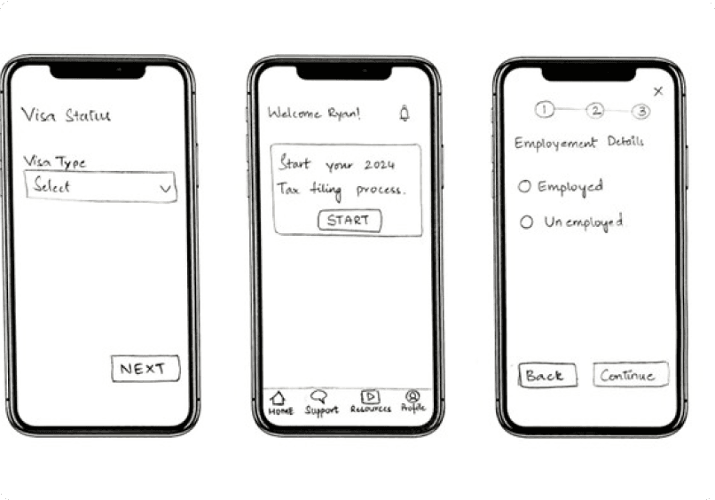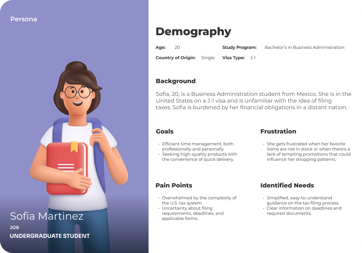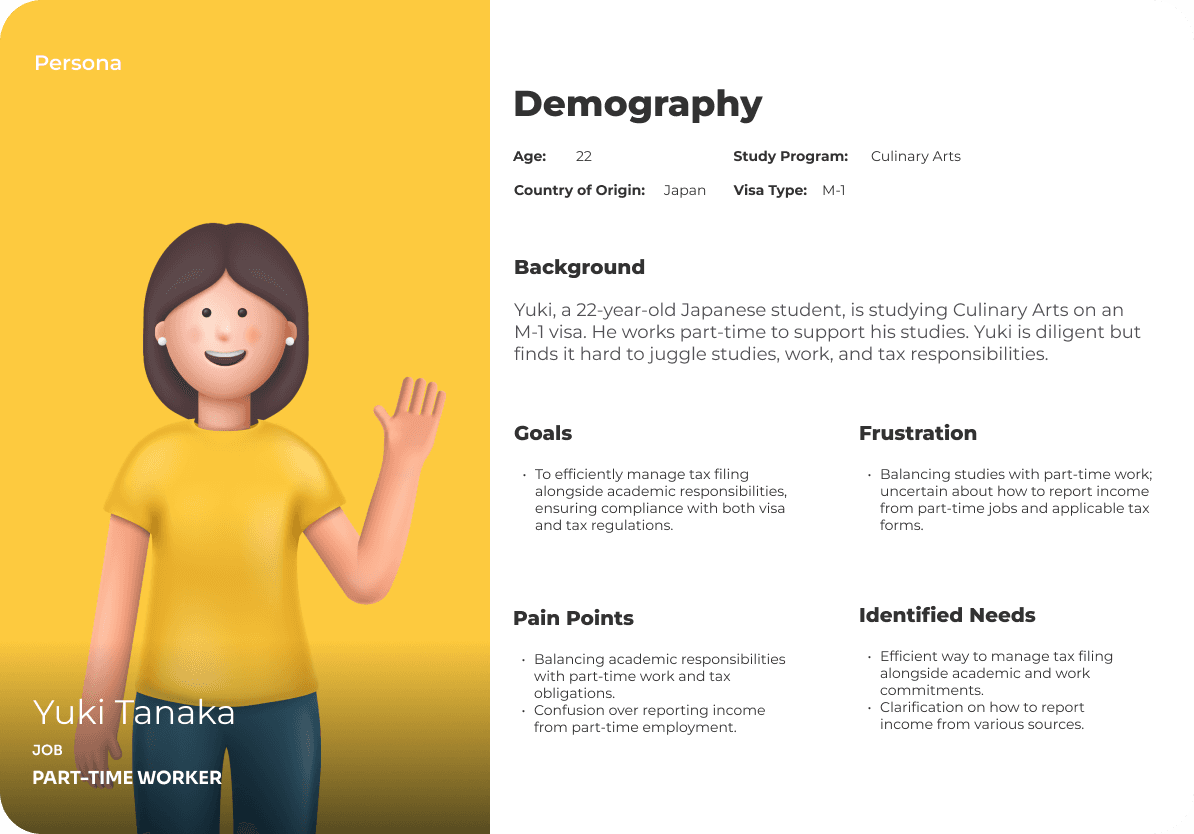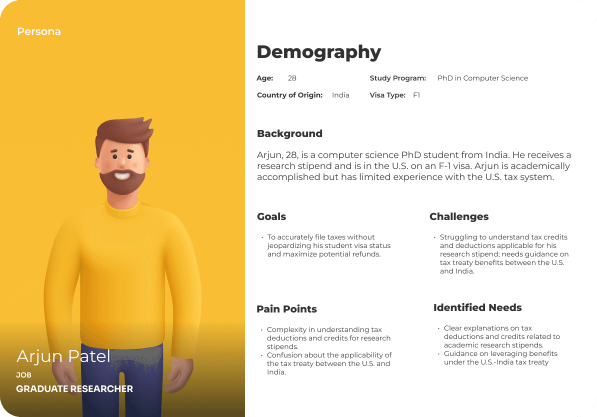As part of the user research, our team conducted 16 interviews with students from various universities across the country, of which I conducted four. The recurring themes that emerged were a lack of awareness, concern about the tax system, and a lack of resources. They reported that university-hosted webinars fell short of their expectations. Furthermore, practically all participants stated that navigating through current tools was quite difficult.