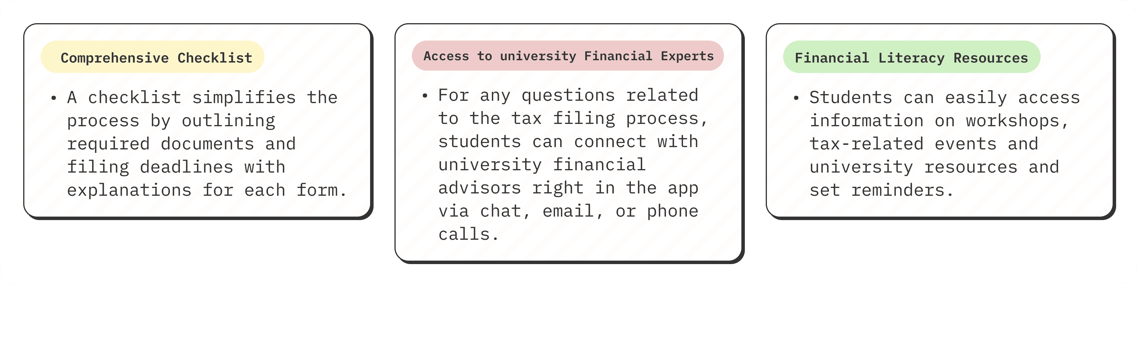 An innovative solution for international students to guide them through the complex US tax forms with a document checklist, support from university financial experts, and resources for financial literacy.
